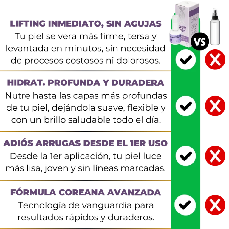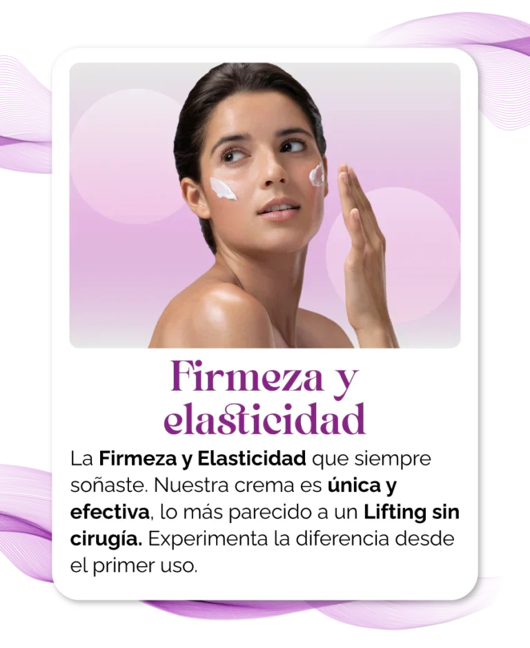 Desde la primera aplicación notarás una piel más firme, lisa y luminosa. Con el uso continuo, las arrugas y líneas de expresión se reducen aún más.