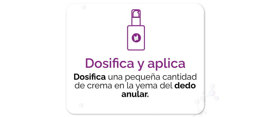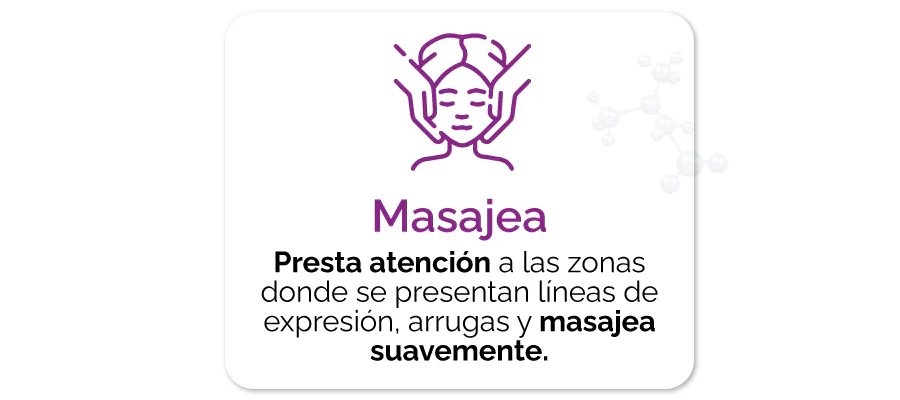 Con solo unas gotas es suficiente. Aplícala con movimientos ascendentes en rostro y cuello para potenciar su efecto lifting.