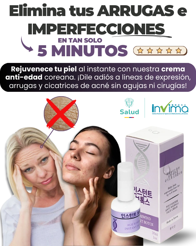 ✨ Desvanece tus arrugas y cicatrices de acné EN 5 MINUTOS con nuestra Crema Botox Instantánea.